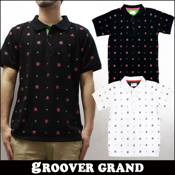 【50%OFF】GROOVER GRAND グルーバーグランド ポロシャツ 半袖 メンズ 半袖ポロシャツ モノグラム ドット 黒 ブラック 鹿の子 ストリート系 ファッション ダンス B系 ゴルフ レディース